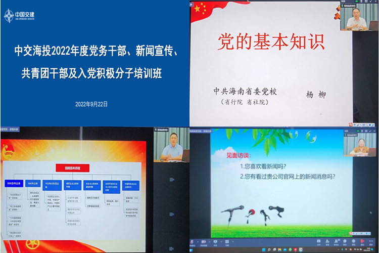 為深入學(xué)習(xí)貫徹習(xí)近平新時(shí)代中國(guó)特色社會(huì)主義思想,進(jìn)一步提高公司黨務(wù)工作、新聞宣傳工作、團(tuán)青工作水平,充分發(fā)揮各級(jí)黨組織的先鋒模范作用,9月22日,公司舉辦2022年度黨務(wù)干部、新聞宣傳、共青團(tuán)干部及入黨積極分子培訓(xùn)班。中交海投黨委副書記、紀(jì)委書記、工會(huì)主席楊凱出席開(kāi)班儀式并發(fā)表講話。